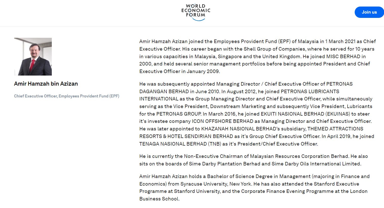 Previously Amir Hamzah Azizan, the previous CEO of the EPF was appointed finance minister II in a cabinet reshuffle last December. Amir is a staunch member of the WEF.