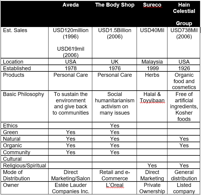 Each company has been able to create a solid position in international markets by following a definite corporate and marketing philosophy based on a theme. Not many companies have completely connected all the possible paradigms together into one complete corporate image and philosophy, except for Aveda and The Body Shop, although the Body Shop has not been without criticisms. There is a link between company platform (i.e., Aveda owned by Estee Lauder) and size. Good and opportune branding also requires strong channel access to succeed. One should also note that there is a growing momentum of small to medium young companies that are achieving dramatically high sales growth rates through the utilization of themes in their marketing and corporate strategies.