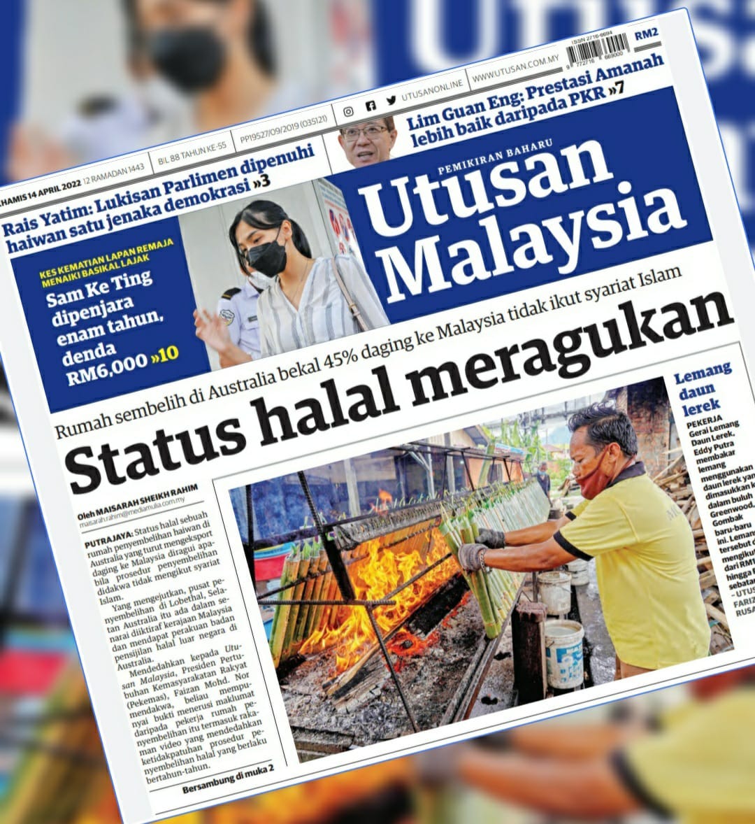 A report on the front page of Utusan Malaysia over the past three days revealed that the halal status of an animal slaughterhouse in Australia which also exports meat to Malaysia was in doubt when the slaughtering procedure was allegedly not in accordance with Islamic law.