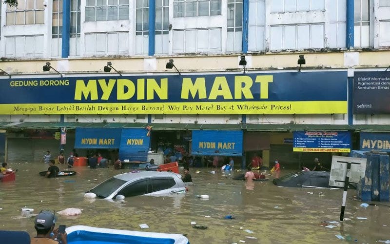 Permatang Pauh MP Nurul Izzah Anwar’s warning to the government to prepare for the approaching monsoon season last July, went totally unheeded. In what is being described as the worst floods to hot Malaysia sine 1971, there have been at least eight deaths reported and as many as 64,000 people displaced from their homes. Thousands are stranded on the roofs of their homes, some waiting days for rescue. Cases of Covid-19 are rapidly rising in flood relief centers. Markets and supermarkets under flood waters, particularly in Kuala Lumpur and Selangor, is causing many families to go hungry. Some people are so desperate that supermarkets have been looted.