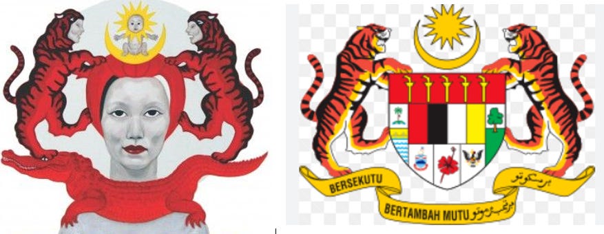 A comparison of the Shia painting and the Malaysian Coat of Arms. Art can only be seen through the eyes of the beholder. It is apparent artist Shia Yih Ying clearly had another message than what the authorities are seeing.