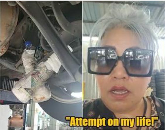 A bomb? Discovered by a mechanic? More details of what actually happened, what that thing really is under the car, and what police plan to do about it are needed. AND, as the author says, officials need to speak out about this. Intimidation of this type should be denounced and stopped.