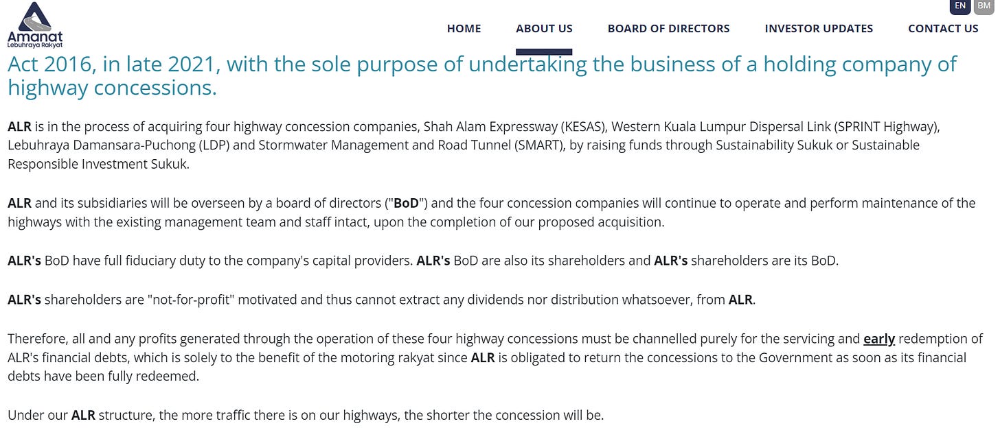 Amanat Lebuhraya Rakyat Bhd (ALR) has made an offer to takeover four urban toll highways, KESAS, Smart, Litrak, and Sprint. This is a very opaque backroom deal over a utility which should be a public asset.