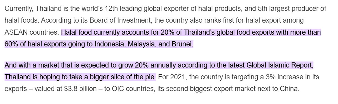 Countries like Thailand, with more than 6 million Muslims have a modern and sophisticated halal industry and are rapidly capturing markets across the world with their high-quality products and good reputation of their halal certification and supply chain system. This is years advanced to the current Malaysian system.