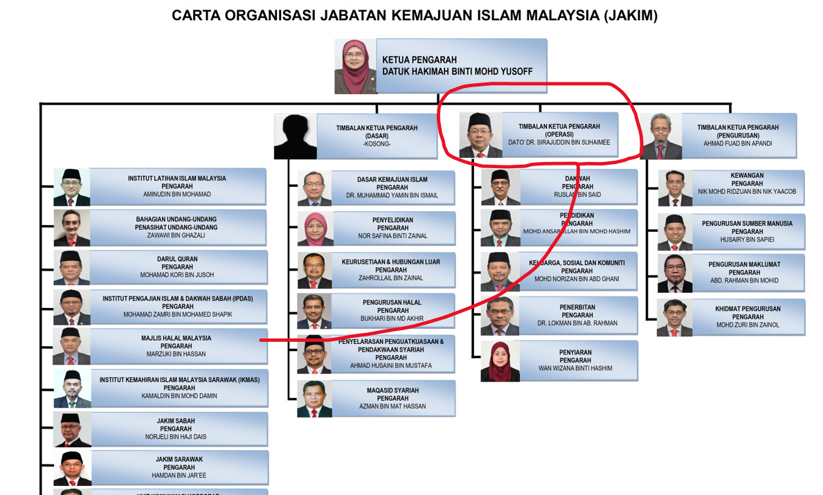 There is a power struggle going on within JAKIM where the present Director General Hakimah Mohd Yusof is expected to have a very short tenure at the top. The failure to prosecute those involved in Halal racketeering in Australia, now leaves it open for Sirajuddin Suhaimee to become the next Director General.