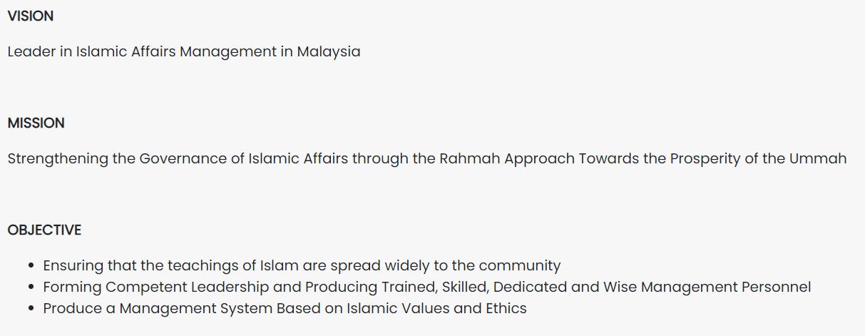 JAKIM is part of the Malaysian bureaucracy housed under the authority of the Prime Minister’s Department, and under supervision of the Council of Rulers. JAKIM is staffed by civil servants. There is nothing about divinity and altruism within JAKIM’s mission, other than to promote state influence within Islam and related issues.