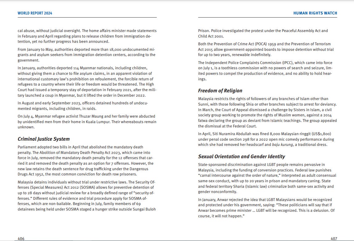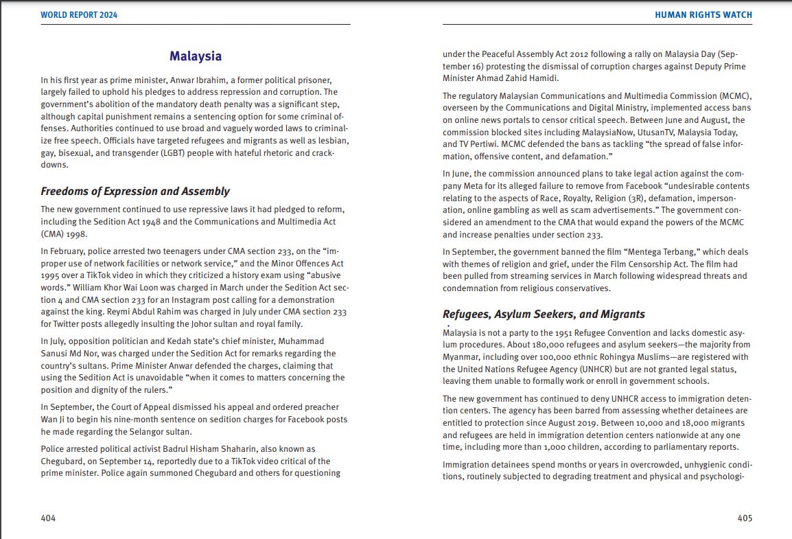 (Bangkok) – Malaysia’s new government under Prime Minister Anwar Ibrahim largely failed to uphold its pledges to address repression and corruption in 2023, Human Rights Watch said today in its World Report 2024.