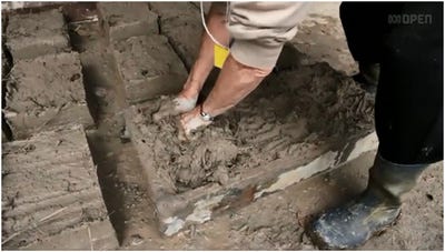 Cob which involves developing a loamy clay like mud compound and mixing straw or rice paddy husks into it to build strength.