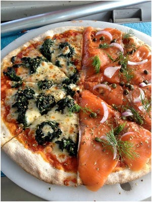 Although the operation looks simple, there has no doubt been years of thinking and experimentation behind what Pizza Aroy offers. Each recipe must have taken many tries to bring the taste up to the perfection of today. The wood-fire oven itself, on the top of a van, is really a beautiful and precise piece of engineering.