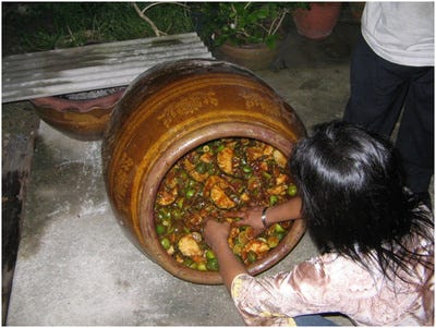A basic recipe may consist of mixing 6 kilograms of a combination of Banana, grape, Pineapple, apple, orange, papaya, noni, lime, kiwifruit, dragonfruit, and Mangostein, 2 kilograms of honey, and 20 kilograms of water. The procedure would require placing all the ingredients together in a sealed tank and mixing them by hand from time to time. Leave the container in a dark cool place for at least one year. This process can be sped up by placing an existing enzyme in the mixture, where the whole process may take only 3 months. The result of this fermentation will be an enzyme cocktail with natural sugars which will assist your metabolite system.
