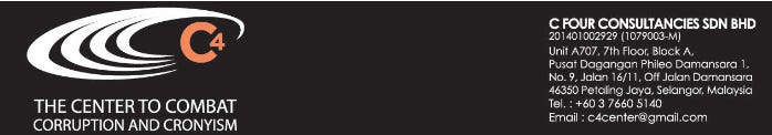 The audit additionally showed that of the 16 projects, a staggering 11 failed to meet their objectives. Furthermore, the performance of 3 could not be ascertained, while only 2 succeeded in their objectives. The Center to Combat Corruption and Cronyism (C4 Center) is appalled at the above revelations and demands that the government takes these findings seriously. The Malaysian Anti-Corruption Commission (MACC) must open investigations into these cases in collaboration with the Auditor-General’s Office in order to ascertain if corruption had contributed to these losses. These revelations further illustrate the urgent necessity for institutional reforms such as the legislation of a Government Procurement Act and establishment of an Ombudsman Office.