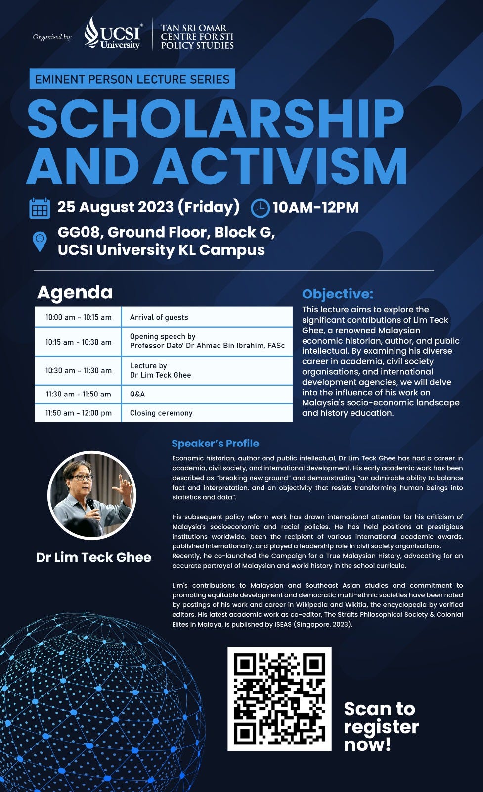 MalaysiaRegistration: Dr Lim Teck Ghee Scholarship and activism UCSI University 25th August 2023Aug 17, 2023ShareShareSubscribe Below:SubscribePreviousNext
