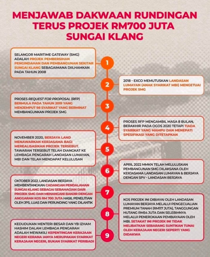 In the comments to the article - "Selangor MB, Vincent Tan & Runding Terus: A toxic mix of business and politics?" by Hussein Abdul Hamid, a commentor Johan Taharin points to the Selangor Maritime Gateway master plan, which describes the project which "covers 88,000 acres of land along 56 km of Klang River. This initiative ascertains the quality and opportunity of potential developments along the river." The key word being "developments".