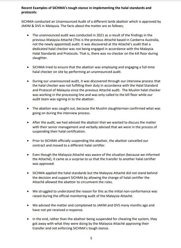 Please find the SICHMA press statement in full. JAKIM, TFI, and the Australian Department of Agriculture, Water, and Environment (DAWE), need to reiterate their positions.
