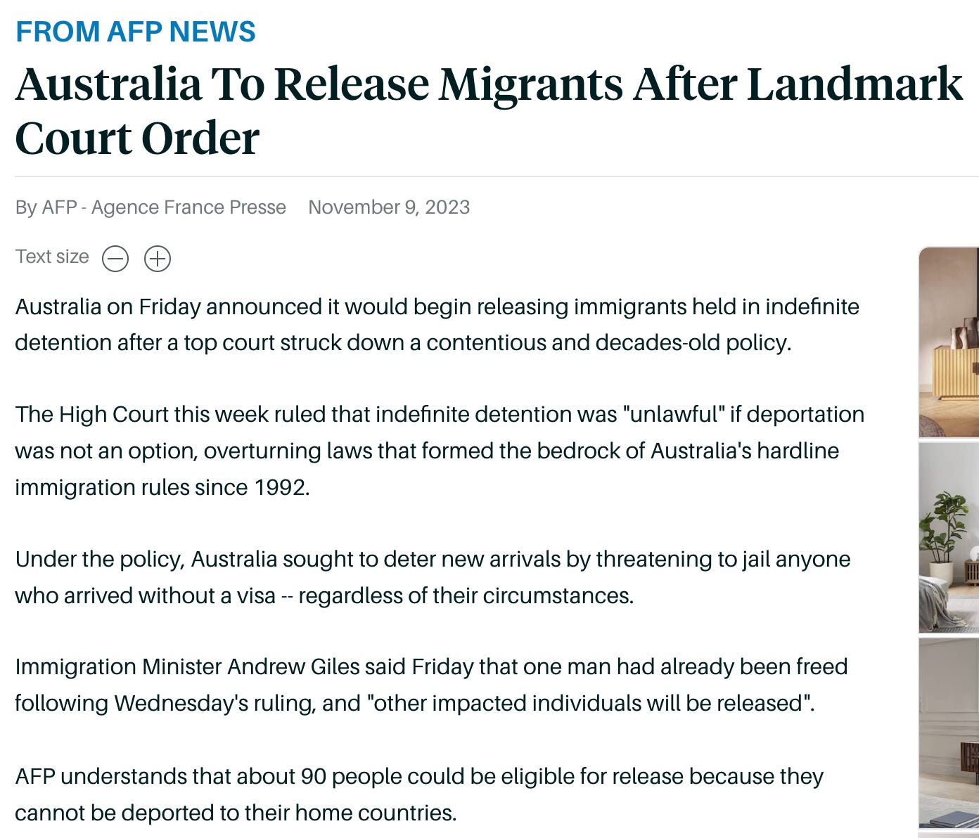 The High Court's decision is an adminstrative one based on a reasoning by the High Court that the Australian government's failure to process these detainees within a reasonable period of time was unconstitutional and in breach of their Human Rights and therefore unlawful. It is not a decision based on the merits of Sirul's case.