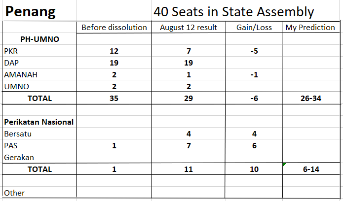 Surprisingly, voter turnover was just above the 74 percent in the last general election. This probably favored Pakatan Harapan slightly. Across the 6 states the vote reflected the same patterns as the vote in the last federal election. If the state elections had of been held on the same day as the general election last year, they would have been more or less the same.