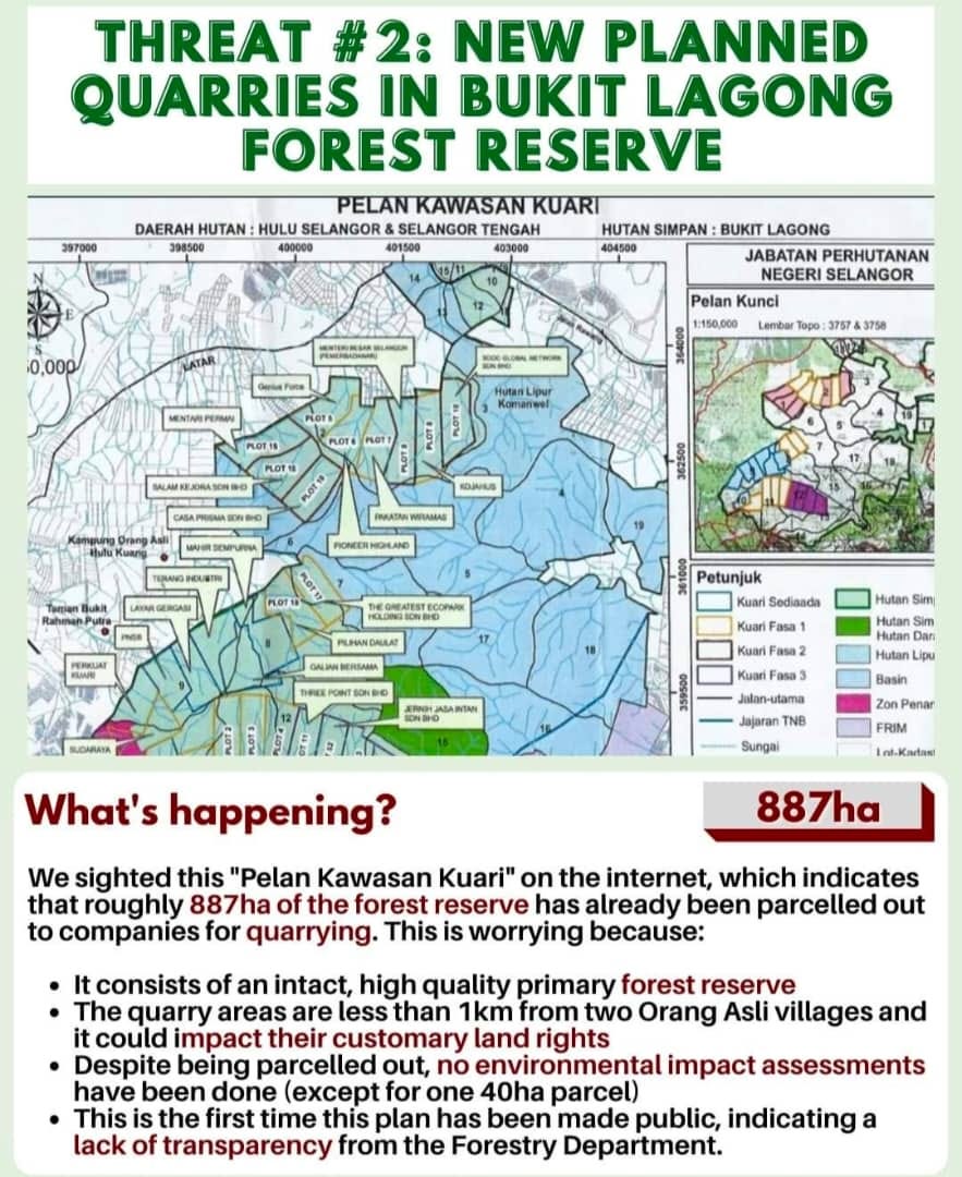 Otai Reformasi, an environmental activists group made a freedom of information request to the Selangor State Government under the State Freedom of Information laws. However, the Secretariat of the Selangor State Government replied, stating any information about quarrying at the Bukit Lagong Forest Reserve was classified as ‘confidential and secret’ under the Official Secrets Act.