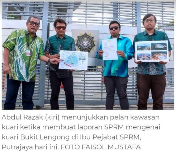 Green Party Malaysia (TGP) secretary general Abdul Razak Ismail said a report was lodged with the Malaysian Anti-Corruption Commission (MACC) at the Selangor office in October 2022. He was told the case file was transferred to the MACC headquarters in Putra Jaya. Early January, a letter was written to the MACC to find out the status of any investigations.