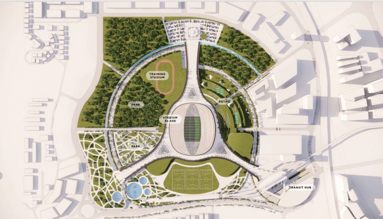 Disana dari model tersebut, ianya jelaslah bahawa Kerajaan Negeri melalui MRCB bercadang untuk merobohkan kedua-dua Stadium Bola Shah Alam dan Stadium Tertutup Malawati bagi memberi laluan membina sebuah Stadium baru yang lebih kecil dan hanya boleh memuatkan 35 ribu orang penuntun berbanding Stadium sediaada boleh memuatkan kira-kira 85 ribu penuntun.