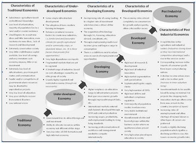From the point of view of opportunity, the accumulation of capital, social, cultural, political, regulatory, technological, and attitudes towards risk and investment are all important factors in the creation of the opportunity landscape which is related to the stage of national development – demographically, economically, socially, regulatory, and technologically. The following paragraphs attempt to describe the stages of a nation’s evolution in reference to the types of opportunities available within each stage of growth.