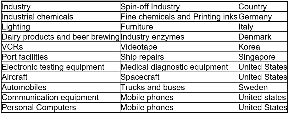 Table 3 Industries and their spin-off industries