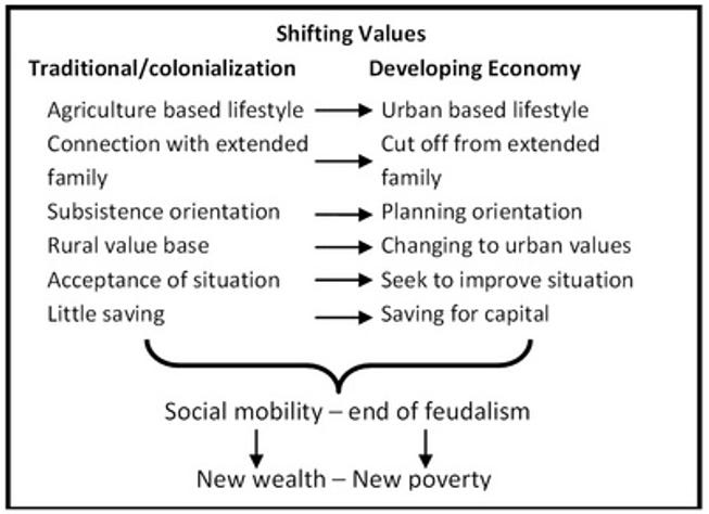 Figure 2 The shifting values that urban society brings to a developing economy