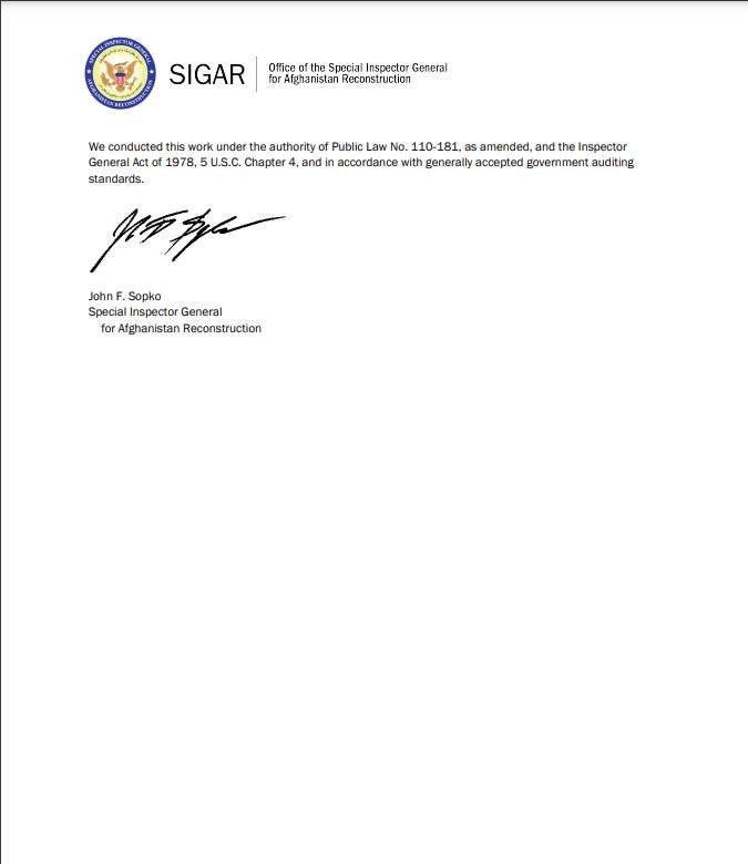 US Auditor Report on Afghanistan indicates massive USD 239M financial misallocations