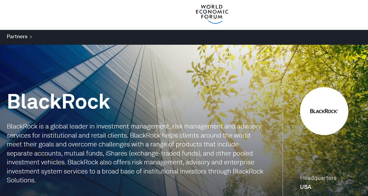 The real concern about BlackRock is not about its Israeli connections. The real concern about BlackRock is that the corporation is a senior strategic partner of the WEF.