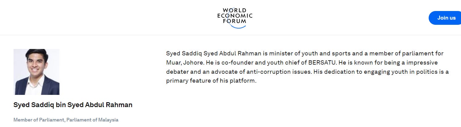 Even Syed Saddiq is a member of the WEF.