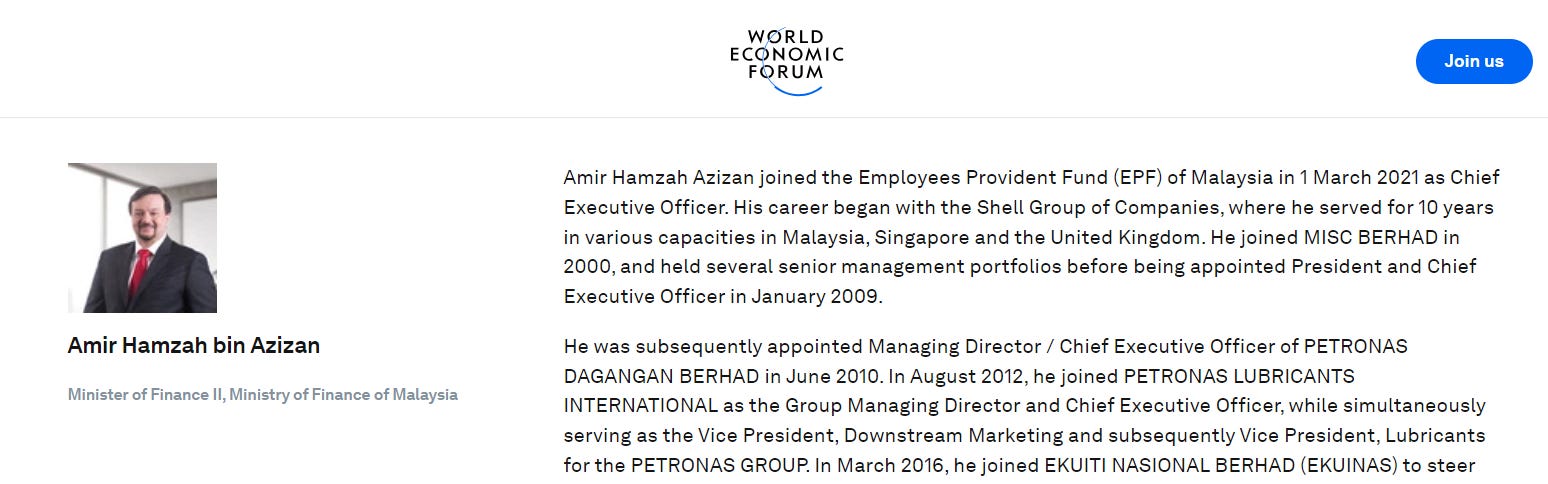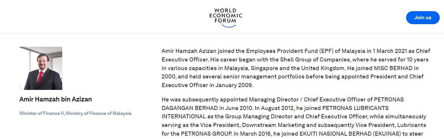 Amir Hamzah Azizan is the chief apparatchik for implementing WEF ideologies within the finance ministry.