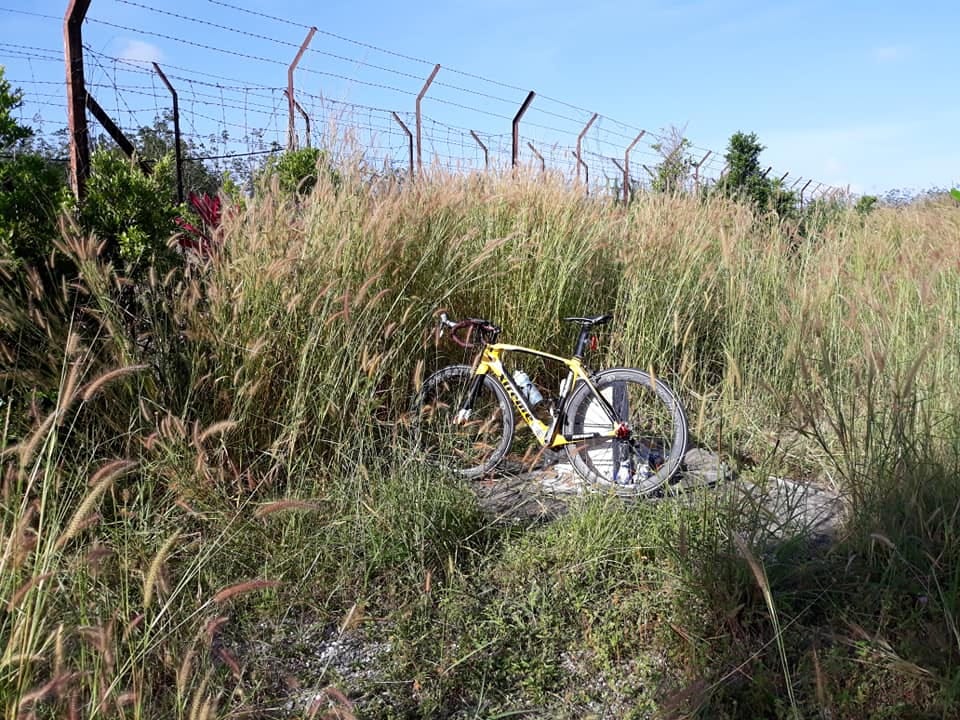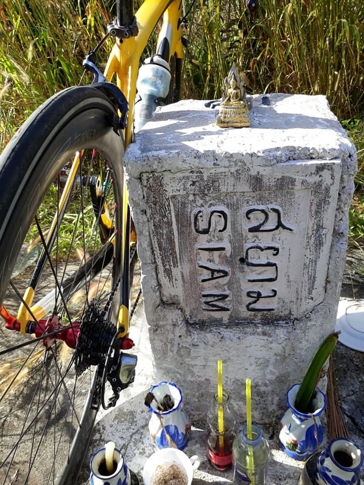 My bike resting on the Kedah-Thai border marker near Danok.